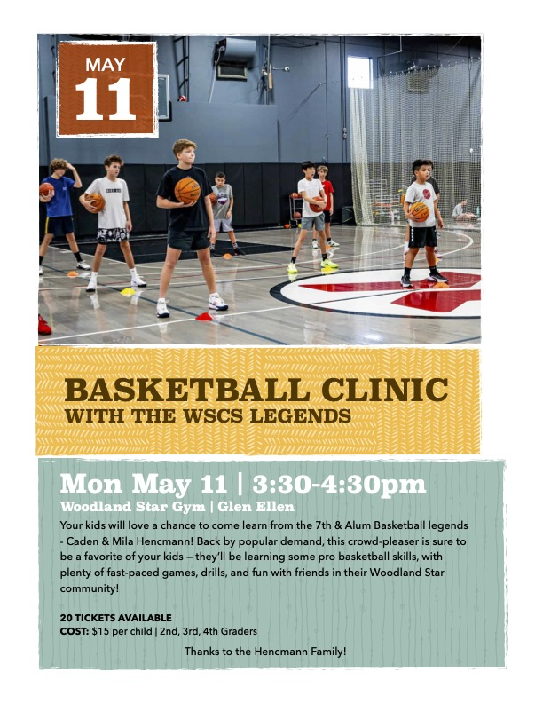 *For 2nd-4th graders* Hosted by brother & sister duo -a WSCS 7th grader, Mila & WSCS Alum, Caden. Learn basketball basics & more!