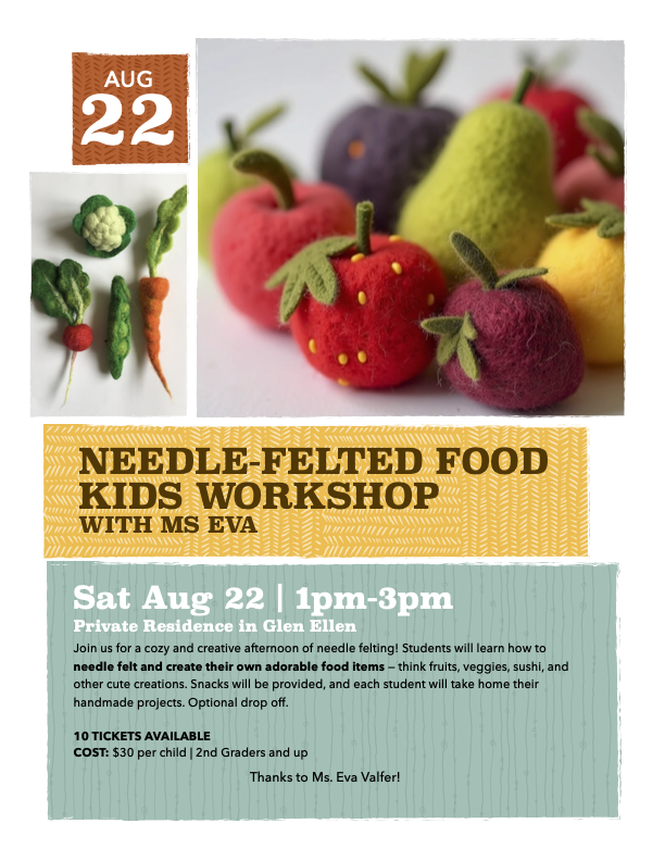 Students will learn how to needle felt and create their own adorable food items to take home!